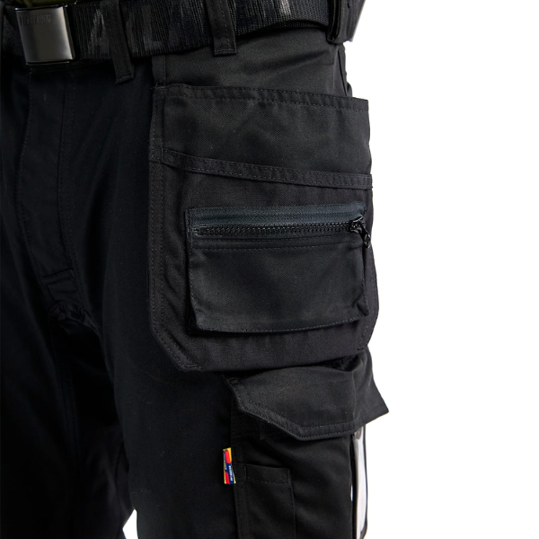 Blaklader Craftsman Trousers Stretch 1750. Regular fit workwear. Lightweight craftsman work trousers with pre-bent knees. Thinner 2-way stretch material. Work pants with panels in 4-way stretch. Trouser has bottom-fed Cordura®- stretch reinforced knee pockets. CORDURA®-reinforced tool pockets.