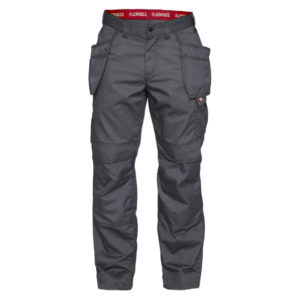 Functional work trousers with contrast stitching. Ideal fit, including ergonomically shaped and reinforced knees. Two spacious slanted pockets and two front hanging tool pockets. Two back pockets with flaps. Thigh pocket with flap and sections for writing implements, etc. Reinforced ruler pocket with extra sections and a hanging bottom for optimal freedom of movement.