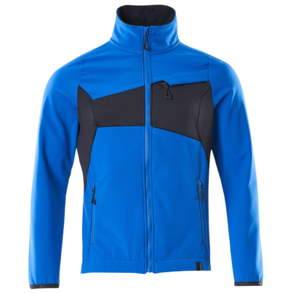 Mascot Softshell Jacket Accelerate 20102. Breathable. Fleece on inner side. High collar. Fastening with zip and internal storm flap. Inner pockets. Chest pocket with a zip. Front pockets with a zip. Reflectors.
