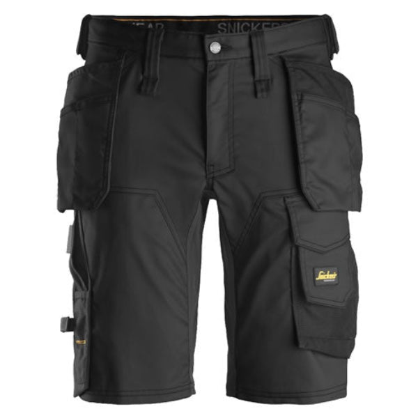 Snickers 6141 AllroundWork Stretch Shorts Holster Pockets. Slim fit work shorts in stretch with holster pockets. Strategically placed 4-way stretch at the back and gusset in crotch for extra flexibility and comfort. Ideal for professional workwear, combining durability, comfort, and functionality on the job.